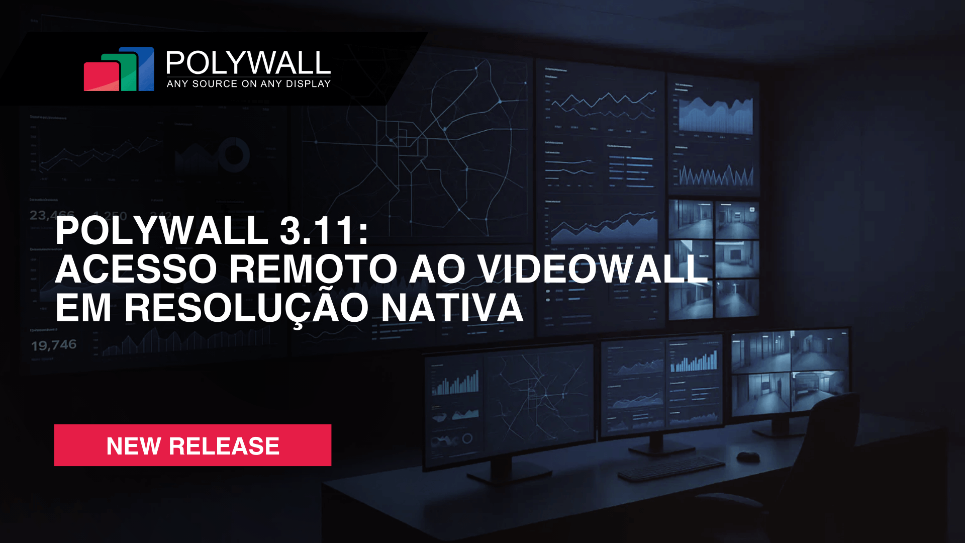 - Dos cabos ao software. Arquiteturas legadas, centradas em estações de trabalho, lutam para acompanhar esse volume e variedade. Controladores de videowall modernos, baseados em software, como o Polywall, consolidam fontes e permitem que um único operador organize e gerencie muitos dashboards de uma só vez. Até agora, porém, a interação era tipicamente local: usuários remotos podiam assistir, mas não trabalhar.